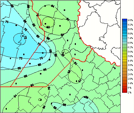 Mapa de humedad relativa de las las últimas 72 horas.(Desde las 8:00AM hasta las 8:00AM). Se actualiza a las 10:00hs.