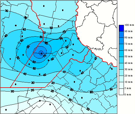 Mapa de precipitación acumulada en las últimas 72 horas.