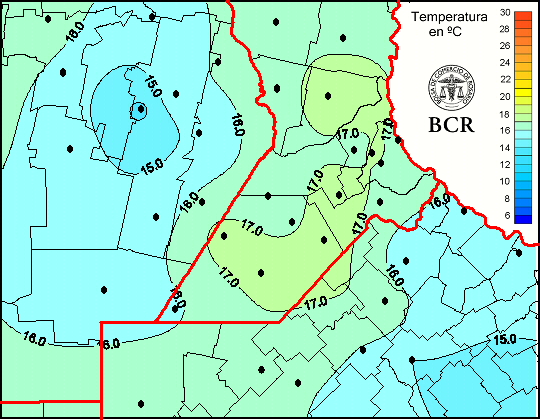 Mapa de temperaturas medias de las las últimas 24 horas.