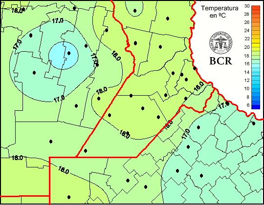 Mapa de temperaturas medias de las las últimas 24 horas.