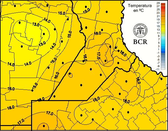 Mapa de temperaturas mínimas de las últimas 24 horas.