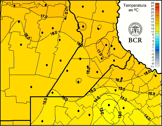 Mapa de temperaturas mínimas de las últimas 24 horas.