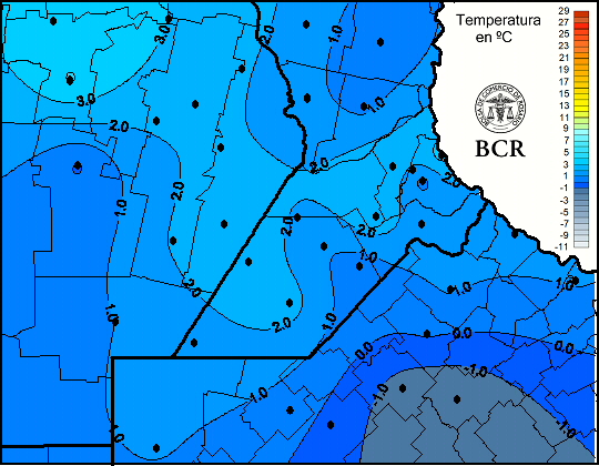 Mapa de temperaturas mínimas de las últimas 24 horas.
