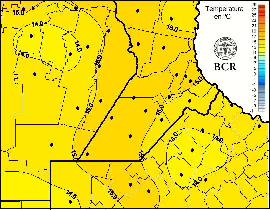 Mapa de temperaturas mínimas de las últimas 24 horas.