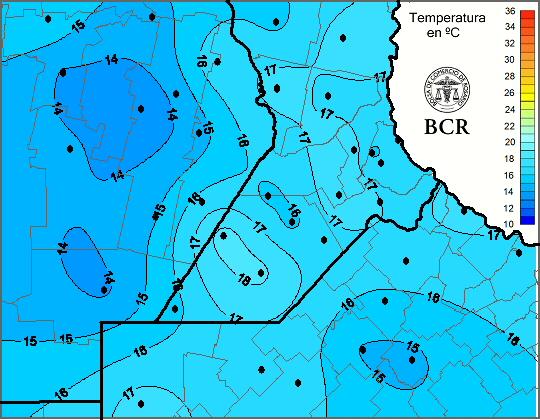 Mapa de temperaturas mínimas de las últimas 24 horas.
