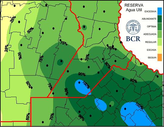 En líneas generales, las reservas de agua en la zona núcleo son mayoritariamente adecuadas, y las ventanas de tiempo entre los desarrollos precipitantes son suficientes para una razonable asimilación del agua recibida, esto siempre y cuando el comportamiento pluvial siga manteniéndose dentro de los valores medios estacionales.