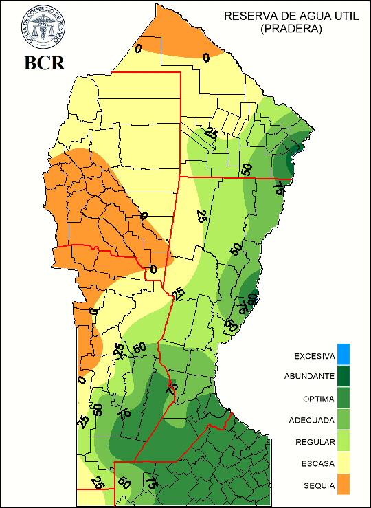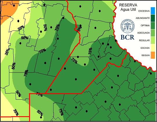 Con este panorama las reservas mejoraron respecto a la semana pasada, en el centro/sudeste de la zona GEA los niveles ahora se encuentran abundantes, mientras que en el resto de la región las reservas son adecuadas, disminuyendo hacia el noroeste donde alcanzan condiciones de escasez a sequía.