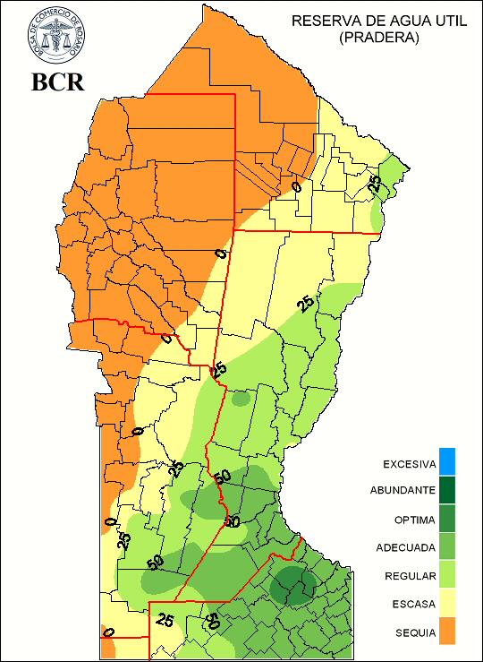 Si bien noviembre mantuvo una cierta periodicidad de lluvias, su distribución e intensidad se volvieron más heterogéneas, y esto ya se refleja en el estado de las reservas de humedad edáfica. Las condiciones óptimas o adecuadas empiezan a sentir el efecto de la alta insolación diaria y de una mejor oferta de lluvias sobre el este, marcando un gradiente decreciente de agua útil a medida que se avanza hacia el oeste del país.