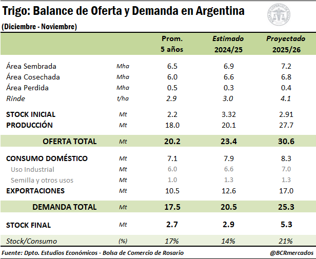 • Trigo: Balance de Oferta y Demanda en Argentina