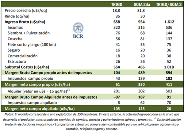Con un rendimiento de 30 qq/ha, la arveja verde genera un margen neto de 167 USD/ha en campo propio y 27 USD/ha en arrendado. Si la productividad cae a 25 qq/ha, el margen se reduce a 79 USD/ha en campo propio y se vuelve negativo en campo alquilado, alcanzando –82 USD/ha. Con rindes de 20 qq/ha, las pérdidas se registran en ambos esquemas de tenencia, ya que la productividad se encuentra por debajo del rinde de indiferencia: 22 qq/ha en campo propio y 28 qq/ha con arrendamiento, considerando impuestos.