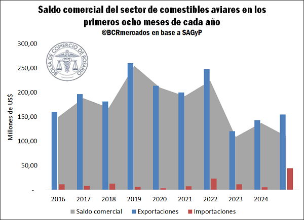 Como las importaciones en el período considerado crecieron más que proporcionalmente en comparación con las exportaciones, la balanza comercial viene manifestando un deterioro: arroja un superávit de US$ 110 millones, lo que refleja una caída del 20% interanual, y del 37% en comparación con el promedio de los últimos cinco años.
