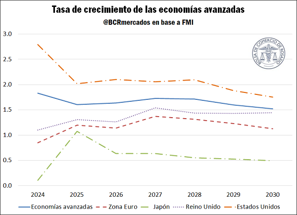 Para el grupo de las economías avanzadas, el FMI proyecta un crecimiento modesto del 1,6% tanto para 2025 como para 2026.