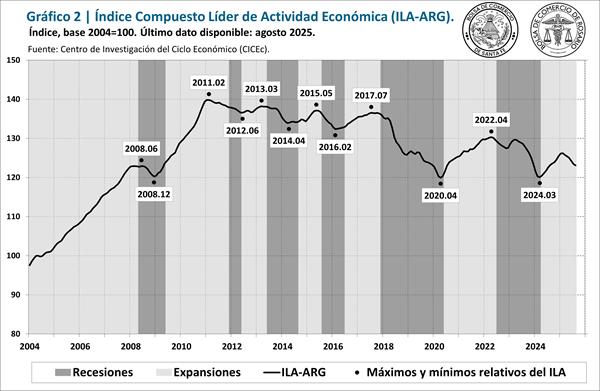 Ambos índices, coincidente y líder, están presentando un entorno de retracción importante en la actividad económica nacional a partir del segundo trimestre de 2025. En particular, entre marzo y agosto se han implementado una serie de medidas con el objetivo de mantener baja la inflación, controlar el valor del dólar y no relegar el equilibrio fiscal que hicieron mella en la actividad económica nacional.