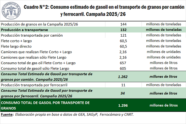 Estimación del consumo de gasoil en el transporte de granos. Campaña 2025/26