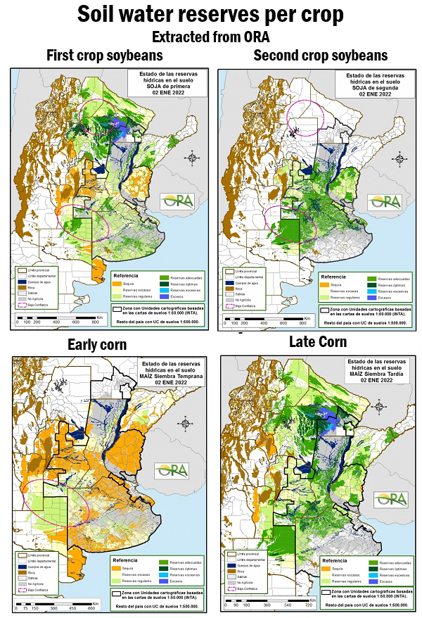 The sustained climatic uncertainty casts doubts on the development of coarse grains. As the last report of the Agribusiness Strategy Guide (GEA, for its Spanish acronym) highlighted, the rains of the first hours of 2022 were not enough to sustain the yields of soybean and corn in the core zone. The climatic variability and the lack of rainfall in the coming days do not foretell optimistic productive results.