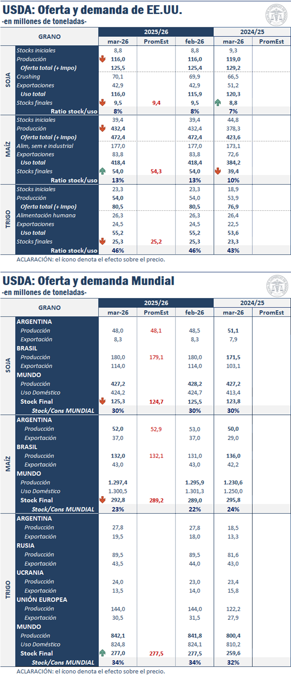 El tercer WASDE del año no trajo cambios significativos para la hoja de balance global de trigo. Se ajustan a la baja las estimaciones para la producción argentina de maíz y soja 2025/26 en virtud de menores rindes esperados para el cereal y menor superficie para la oleaginosa. Hubo cambios relevantes en las estimaciones de ratio de extracción de aceite de soja en USA, menor producción esperada de aceite a pesar de un mayor procesamiento proyectado. Los precios por soja suben en Chicago después del reporte, maíz y trigo sin cambios en la tendencia.