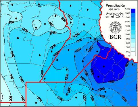 A un día de terminar el 2014, algunas localidades rompieron los récords de los últimos 8 años en el acumulado anual de lluvias. 2014 fue “llovedor” pero, a diferencia del 2012, las precipitaciones se concentraron en el este de la región. Ramallo alcanzó los 1854 mm de registro pluviométrico anual, mientras que el resto del noreste bonaerense, las localidades superaban los 1600 mm. El sureste santafesino tuvo acumulados cercanos a los 1500 mm.