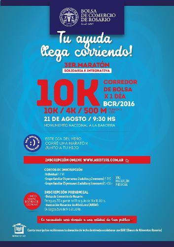 La Bolsa rosarina cumple 132 años y lo festeja, por tercer año consecutivo, corriendo por nuestra ciudad el domingo 21 de agosto a las 9.30 h. El punto de encuentro de la “ Maratón Solidaria e Integrativa” es el Monumento a la Bandera y de allí parten las 3 diferentes propuestas para que todos puedan sumarse: 10 km, 4 km y 500 metros para correr con los más chicos en familia ( running kids ).