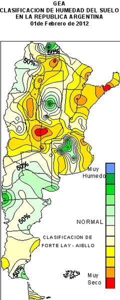 En esta primera parte del destacado evento que se esperaba para los primeros días de febrero prevalecieron lluvias convectivas con destacados acumulados en zonas puntuales pero sin lograr concretar la cobertura necesaria regional que se esperaba. Esto es reflejado a nivel nacional en el reciente mapa de humedad del suelo en el país al primero de febrero muestra claramente las deficiencias en el centro de la región pampeana y las mejoras en zonas del centro de Buenos aires, norte De Córdoba y buena parte de Santiago del Estero. El epicentro de este episodio de seca sigue manifestándose en la región núcleo y más aún en la porción inferior de la provincia de Córdoba con un grave déficit que sigue profundizadose sobre todo en los sectores del suroeste.