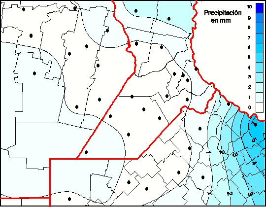 Miércoles, 1 de febrero de 2012Mapa de precipitación acumulada en las últimas 24 horas. (Desde las 8:00AM hasta las 8:00AM). Se actualiza a las 10:00hs.