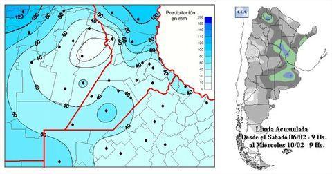 En estos cinco días, se destacaron los acumulados de Colonia Almada con 130 mm, Irigoyen con 104 mm y Clason con 90 mm, localidad seguida muy de cerca por Carlos Pellegrini que recibió 88 mm. La localidad de Rufino sumó 50 mm y totaliza 314,6 mm desde el primero de enero . En zonas aledañas que venían con problemas de anegamientos, este evento volvió a reavivar los problemas de excesos hídricos.