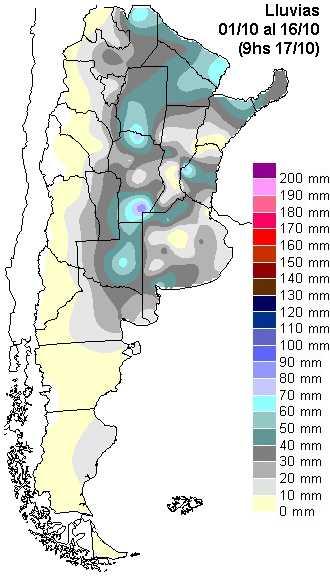 Desde comienzos del mes de octubre se vio que la franja sur de la región pampeana mantendría un nivel de precipitaciones aceptable como para mantener los cultivos de la fina sin limitantes hídricas. Al mismo tiempo se observó un afianzamiento de la mejora pluvial en la provincia de LP, mientras que la franja central viene mostrando una fuerte irregularidad en la distribución de lluvias, donde por sectores y desde el punto de vista pluvial la primavera aún no ha comenzado. Cerrando la primera semana del mes de octubre el cambio de circulación al sector este noreste, favoreció el ingreso de una masa de aire húmedo, cuya presencia aún es evidente en la actualidad. Es decir desde el miércoles 9, la atmósfera dispone de humedad como para que se desarrollen sistemas precipitantes y en todo caso, las zonas mal provistas son el resultado de una dinámica que todavía no logra ser homogénea a la hora de desplegar las lluvias. Entre el miércoles y el sábado de la semana pasada, se observó un período de inestabilidad que tuvo su máximo de actividad cambiando del jueves 10 para el viernes 11. En particular la franja central de la provincia de ER fue la que recibió las lluvias más importantes. Luego fue el turno de la provincia de CB con algunos máximos muy destacados como el observado en Laboulaye y otros que no se representan en el mapa como en la localidad de Monte Buey, donde llegaron a acumularse 140 milímetros. A pesar de que se destacan estas lluvia abundantes, las cuales en un solo evento se aproximan o superan los totales mensuales, este comportamiento ha sido localizado, observándose promedios areales mucho más bajos que el que denotan esto máximos puntuales. En gran parte del norte de la provincia de ER y buena parte del sur, las lluvias han sido modestas, lo cual se acopla al comportamiento que viene mostrando toda la provincia de SF y buena parte del norte de BA. Durante la tarde de ayer, llovió en gran parte de CB y en algunos sectores del sudeste de BA, sin que las precipitaciones logren alcanzar la provincia de SF. Esto evidencia la irregularidad del comportamiento pluvial y compromete el normal desarrollo de las siembras de maíz Debido a la persistencia de aire húmedo aún se perfilan precipitaciones sobre la región pampeana. El comienzo del fin de semana se presentaría muy inestable en el sur con el avance de un nuevo frente frío. Todas las miradas están puestas sobre el comportamiento que esta perturbación tendrá al transitar la provincia de SF. A gran escala y considerando el irregular despliegue de las lluvias podríamos decir que esta provincia es el epicentro de las deficiencias pluviales. Aún cuando puedan mencionarse ejemplos de localidades mejor provistas, en este vital territorio de la zona núcleo han sido recurrentes las lluvias modestas y claro, la ansiedad aumenta con cada pronóstico que abre las puertas de una nueva posibilidad de precipitaciones sobre campos que a esta altura del año no deberían estar sufriendo este trajín hídrico. En resumen la primera quincena de octubre ha traído mejoras a gran parte de la provincia de CB y al centro de ER, mientras que la provincia de SF espera impaciente que las precipitaciones se generalicen en toda la franja central. El domingo puede darse un evento que morigere las demandas de esta provincia.