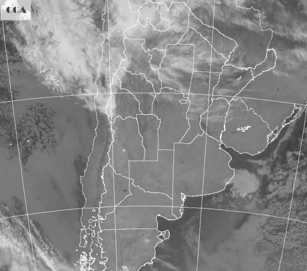 La masa de aire frío de origen polar continúa teniendo una fuerte presencia en gran parte del país influenciando fundamentalmente la región pampeana, llegando hasta el centro de la Mesopotamia. Las mínimas no han sido muy rigurosas, pero no son pocas las localidades que reportan temperaturas en torno a los cero grado centígrados. No se han reportado nieblas o neblinas salvo en zonas del NOA. La foto satelital, alternativa a la habitual, presenta un despliegue de nubes bajas que transitan de oeste a este sobre el norte del país. Allí se han visto favorecidas las nieblas, situación que se modifica al ingresar a la región pampeana. En general en este sector, como en el norte de la Patagonia, predominan los cielos despejados, con algunas brumas. Sobre el extremo sur de la Patagonia, fuera de la foto, transitan algunas perturbaciones que pueden estar dejando precipitaciones, incluso algunas nevadas. Las perspectivas para el fin de semana presentan algo de inestabilidad durante el sábado y domingo en la franja central. Esto debería traducirse en un aumento transitorio de las coberturas nubosas, con baja posibilidad de que se concreten algunas lloviznas o lluvias ligeras dispersas principalmente en ER y el noreste de BA. El frío continuará durante el fin de semana, pero las mínimas crecerán respecto de la jornada de ayer y hoy. También se esperan máximas algo más elevadas. La semana próxima se verá también condicionada por la presencia de aire frío, aunque en general con temperaturas más cercanas a las esperadas para la época del año. Por lo pronto no se proyectan sistemas precipitantes de importancia, incluso podría mantenerse seca toda la semana.