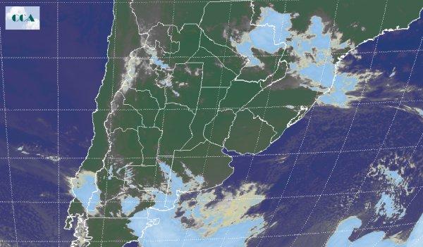 El comienzo de fin de semana trae una rotación temporal al sector norte de los vientos impidiendo que las mínimas, principalmente en el sur pampeano, presenten valores por debajo de 0 ºC. También la presencia de nubosidad baja y el remanente de humedad permite que las mínimas mantengan un umbral de 6 ºC - 8 ºC en la franja central. Los reportes de neblina corresponden principalmente a la región del centro - sur del Litoral y este de BA; no obstante, las provincias de CB y SF también presentan problemas de visibilidad debido a este fenómeno. En el recorte de la Imagen Satelital se puede observar el predominio de cielos mayormente despejados en dirección norte de la franja central; cabe mencionar, que luego del pasaje de una perturbación que arrojó algunas precipitaciones en el NEA, CB, norte de SF y norte de ER las condiciones comenzaron a mejorar desde las últimas horas de la jornada de ayer viernes. Por otro lado, en el sur pampeano ingresa un sistema frontal que gana horas de inestabilidad a medida que progresa en dirección norte noreste. Sin embargo, el desarrollo de esta perturbación es pobre al igual que el contenido de humedad por lo cual no trasciende más allá de lloviznas aisladas de escasos milimetrajes. Se espera para lo que resta del fin de semana que se afiance el posicionamiento de la masa de aire frio que ingresa lentamente desde el sur pampeano. Este escenario es protagonista durante toda la semana con bajos valores de mínima y máximas que acompañan el inminente cambio de estación.