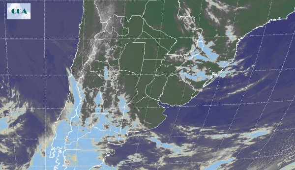 La temporal rotación con componente del sector sur de los vientos en la última parte de ayer viernes, provocó un moderado descenso de los registros de temperatura principalmente en el sur de la región pampeana. Esta situación se ve reflejada en el comienzo de fin de semana donde las mínimas rondan los 5 ºC 7 ºC en el sur bonaerense. En la franja central y en dirección norte, el comportamiento térmico se ajusta a la masa de aire templada ubicada en el centro norte del país con registros mínimos que comienzan en torno a los 12 ºC y se extienden más allá de los 16 ºC en el extremo norte y región de Cuyo. En el recorte de la imagen Satelital puede observarse por un lado la extensa cobertura nubosa que lentamente penetra desde el norte patagónico hacia el oeste pampeano, y que al ingresar a esta última región comienza a desorganizarse. En contraparte, todo el centro este y noreste del país se ve influenciado fuertemente por la circulación que impone un sistema de alta presión el cual es responsable del lento ingreso de humedad en capas bajas de la atmosfera. Se sostiene las condiciones de buen tiempo durante los que resta del fin de semana en las principales regiones agrícolas del país con temperaturas acorde a la masa de aire con características primaverales instalada en la mitad norte del territorio nacional. En el comienzo de la semana laboral, regresan las ansiadas condiciones inestables, comenzando en el sur pampeano con un moderado descenso de temperaturas sin presentar condiciones extremas.