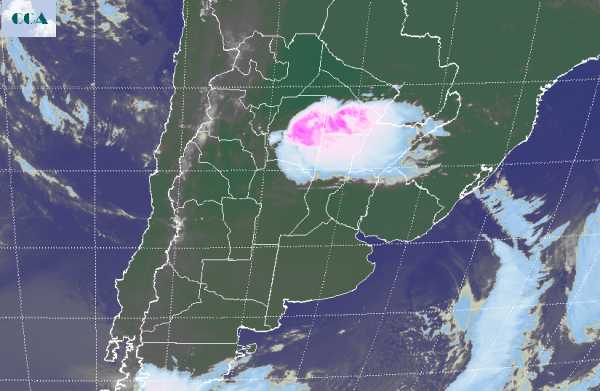 Durante las últimas horas de la tarde de ayer comenzó a observarse el avance de un sistema frontal con paso muy rápido hacia el norte y que derivo en un importante cambio de masa de aire. A su paso los fenómenos se fueron intensificando sobre el este de la cuenca del Salado bonaerense, en general con fuertes vientos, que en algunas localidades puntuales provocaron daños destacados (Chivilcoy y zona aledañas). Como decíamos el avance de este frente fue muy rápido y el contraste entre masa de aire fue la causa de la intensidad de los vientos, los cuales sin embargo no fueron acompañados por lluvias de importancia. Se han reportado precipitaciones del orden de los 10 milímetros en el este de ER y similares en el noreste de BA, pero no ha llovido en el resto de la zona núcleo. Actualmente el frente se ha vuelto estacionario y muy activo en el sur del NEA y norte de SF, tomando el este de Corrientes. La imagen satelital sitúa la zona más activa identificando las nubes de mayor desarrollo. En efecto en la zona este de Santiago del Estero y gran parte de Chaco, las tormentas son intensas y si bien aún no hay datos, se espera que en la zona se produzcan lluvias abundantes dado que la velocidad con que avanza el frente es menor y la posibilidad de que los sistemas precipitantes ganen desarrollo aumenta. Tras el pasaje frontal el tiempo se mantendrá bueno con cielos despejados en gran parte de la región pampeana. El ambiente temporariamente ha cambiado, pero se espera que las condiciones térmicas sean variables en los próximos días, en especial en el sur de la región pampeana. Las lluvias recién podrían reaparecer con cobertura sobre la zona núcleo hacia el final del domingo, en principio sin tomar las provincias de BA y LP.