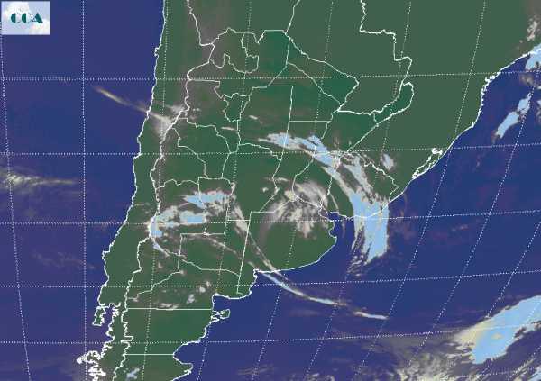 Algunas lluvias ligeras dejó el pasaje del sistema frontal en el sur de la región pampeana. Actualmente el mismo se desplaza sobre ER y el norte de SF, permaneciendo algunas coberturas nubosas sobre el norte de BA. Esta nubosidad no ha adquirido desarrollo debido a los bajos niveles de humedad presentes en la atmósfera media y baja. Tras el pasaje frontal ha ingresado una masa de aire frío que si bien no ha provocado condiciones térmicas de rigor, ha promovido un importante cambio de ambiente. Los registros más bajos se observan en el corredor Azul Tandil en la provincia de BA, donde las marcas han caído hasta valores cercanos a los cero grado. El aire frío pasó hacia el norte principalmente por el oeste. La provincia de CB ha tenido un amanecer frío con registros que se mueven entre 4°C y 6°C. Santa Fe, también amaneció frío aunque las marcas se van templando hacia el este. El norte de BA, con mayor cobertura nubosa quedó con mínimas que se mueven entre 8°C y 10°C. Es poco probable que las coberturas nubosas que muestra la imagen satelital deje precipitaciones. El efecto estabilizador del aire frío ingresado, no permite ser optimista de cara al pronóstico de nuevas lluvias para el resto de la semana. Es posible que se observen pasajes de nubosidad hacia el fin de semana.