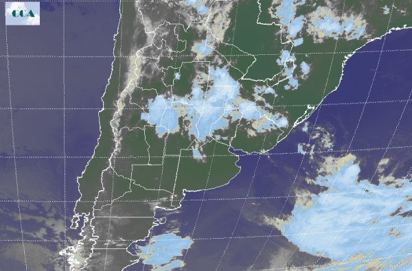 Se observa en la imagen satelital que el sistema de nubes se ha desplazado un poco más al norte y por lo tanto las precipitaciones más importantes se desplazarán, afectando especialmente a la provincia de Córdoba, zona central y norte de Santa Fe, y norte de Entre Ríos, mientras que sobre el norte de Buenos Aires y centro y sur Entre Ríos, se prevén lluvias y tormentas pero con acumulados menos significativos. Continuarán los desarrollos de algunas lluvias y tormentas sobre la zona del NOA, con acumulados moderados, manteniendo la misma características que el martes. En el NEA, las condiciones de inestabilidad se irán incrementando cada vez más, las elevadas temperaturas y el importante contenido de humedad comenzarán a generar de manera aislada algunas tormentas sobre la región.