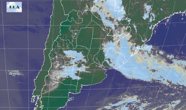La imagen satelital permite observar que el sistema nuboso está bien instalado hacia el oeste del país donde podría darse alguna oferta de lluvias pero de baja intensidad sobre Mendoza y San Luis. En el resto las precipitaciones se retirarán prácticamente del país, desarrollándose un pequeño resto especialmente sobre la zona norte de la región del NEA, específicamente sobre el norte de Formosa y el norte de Misiones. Sobre la región del NOA se espera que continúen desarrollándose chaparrones y tormentas de moderada intensidad, con acumulados muy puntuales y mejoras temporarias. En el resto del país no se prevén precipitaciones significativas. Las marcas térmicas serán menores que los días anteriores.
