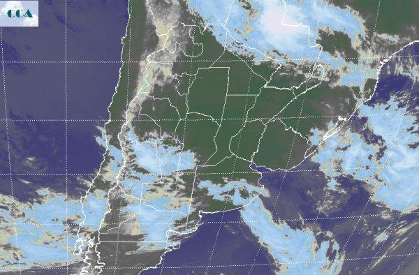 La jornada de hoy comienza con la continuidad del amplio dominio de la masa de aire húmedo y templado que plantea condiciones ambientales desfavorables para las tareas de cosecha. Son muy escasas las localidades que reportan a las siete de la mañana registros de humedad relativa inferiores al 90 por ciento, en general esta marca está por encima del 95 por ciento. En consecuencia no hace falta un enfriamiento nocturno destacado como para que se concreten neblinas o bancos de niebla, las cuales luego devenidas en nubes bajas pueden dejar algunas lloviznas. La foto satelital presenta un vasto sector sobre el centro del país donde las nubes no alcanzan un desarrollo suficiente como para ser coloreadas, sin embargo en toda esta zona prevalecen cielos cubiertos por nubes baja, las cuales pueden lograr temporarias mejoras a medida que transcurra la mañana, pero siempre dependiendo de la evolución de las neblinas. Por otra parte desde el oeste avanza una nueva perturbación, la cual seguramente se desorganizará al moverse sobre la franja central, pero igualmente jugará a favor de mantener cielos con coberturas nubosas que se interrumpen solo en forma temporaria. Si bien los pronósticos de gran escala no están previendo lluvias hasta el viernes o sábado, la probabilidad de lloviznas queda latente por lo que venimos describiendo. Normalmente con el transcurso de la mañana la humedad ambiente decrece, pero estos días no parecen evolucionar hacia niveles bajos de esta variable y por lo tanto, allí donde las nubes bajas se potencien, aparecerán las lloviznas. Sólo las coberturas nubosas ya son un problema para el oreado de los suelos. El sábado ingresa algo de aire más frío, al menos se nota una circulación del sudoeste más marcada. La misma puede ser el esperado factor de secamiento para gran parte de la región pampeana, principalmente para el sur, la zona más atrasada con la cosecha.