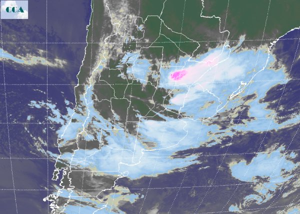Un sistema de baja presión se desplaza por el centro sur de la provincia de BA, proyectando su actividad hasta el noreste de SF y El centro de la Mesopotamia, donde actualmente se están generando las tormentas más destacadas. Durante gran parte de la madrugada se observaron precipitaciones de variada intensidad sobre ER y BA, aunque también en áreas más reducidas se generaron celdas de tormenta en el sur de CB y el sur de SF. Al presente la actividad es pobre en CB, SF y norte de BA, aunque las nieblas y neblinas generan fuerte disminución de la visibilidad. El noreste de BA aún no ha salido del paso del sistema de mal tiempo, si posiblemente esto ya se verifique sobre gran parte de CB y el centro sur de SF. La foto satelital permite identificar destacadas celdas de tormenta en el noreste de SF y gran parte de la provincia de Corrientes, actividad que también se verifica en el centro este de ER y zonas de la cuenca alta del Salado bonaerense, aunque con una intensidad relativamente menor. Las coberturas nubosas que afectan el norte de la Patagonia pueden avanzar hacia el este noreste, con lo cual queda un día de muy mal tiempo para la zona de paso, que incluso puede proyectarse al comienzo del jueves. Las principales tormentas se perfilan sobre zonas del noreste del país, sin embargo las lluvias seguirán afectando durante el día gran parte de LP, BA, ER y en menor medida, ya en forma de lloviznas, SF, CB y SL. Se espera que durante el jueves comience a ingresar el aire frío. Esto aún puede dejar lluvias menores en los partidos del sur y del este bonaerense, mejorando definitivamente el viernes. Desde entonces una nueva masa de aire se asienta en gran parte de la región pampeana, la cual hará sentir frío intenso hasta el sábado inclusive, para luego mostrar temperaturas en progresivo ascenso. El buen tiempo esta vez tiene mejores posibilidades de proyectarse al menos por una semana.