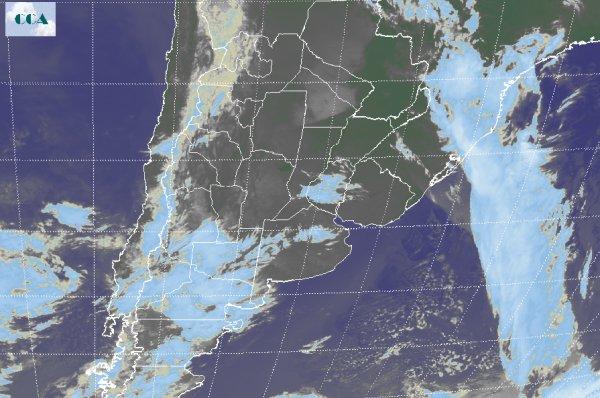 Finalmente se imponen las condiciones de tiempo estable en un contexto dominado por altas presiones y presencia de aire frio y seco. En este escenario, los valores de temperatura en el amanecer de hoy sábado caen por debajo de los 3 ºC en gran parte de la principal región agrícola del país e inclusive se refleja también en el norte del país. Si bien los registros no revisten carácter extremos, se destacan por ejemplo V.M. del Rio Seco en Córdoba con -1.4 ºC, Gualeguaychú ER con -1 ºC y Santa Rosa LP con -1.1 ºC. El recorte de la Imagen Satelital deja ver como ganan territorio los cielos despejados en la mitad norte del territorio nacional facilitando el enfriamiento nocturno. En el este, e internado sobre el atlántico, se puede apreciar la importante banda nubosa asociada al sistema frontal que afectó con significativas lluvias las últimas jornadas principalmente el centro y este pampeano. Cabe destacar que por estas horas aún afecta marginalmente el extremo norte de Misiones complicando aún más la cuenca del Paraná. Se espera que se sostengan las condiciones de buen tiempo a pesar del ingreso de una nueva perturbación fácilmente distinguible en el norte de la Patagonia. La falta de humedad y el sistema anticlónico instalado en el centro norte del país morigera el desarrollo de nubosidad promoviendo una baja chance de chaparrones costeros sobre el comienzo del día domingo. La transición al trimestre más frío establece una pausa en las lluvias y se manifiesta con bajas temperaturas propias de la época.