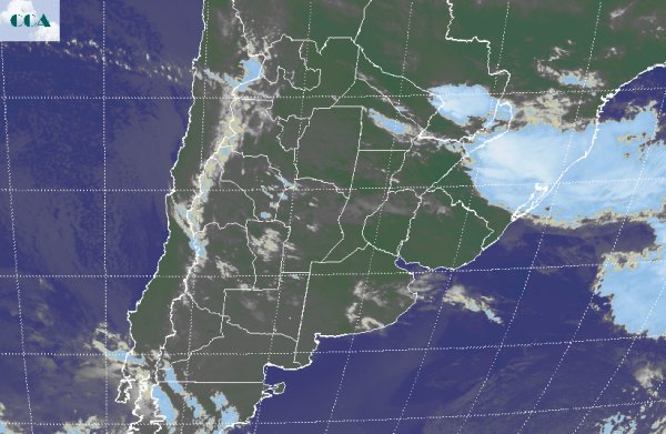 En el comienzo de la jornada de hoy se observa una continuidad en la división de masas de aire, prevaleciendo el ambiente más frío y seco sobre las provincias de LP y BA, donde las temperaturas mínimas se han mantenido en torno a los 3°C, registros que se incrementan de manera significativa sobre la franja central. Algunas nieblas se reportan en sectores del sudeste y norte de BA, sudeste de SF y en áreas dispersas de ER. Al mismo tiempo las nubes bajas que transitan desde el norte de CB hacia el centro de SF, dejan lloviznas dispersas ocasionales, lo cual se repite en vastos sectores del NOA. Tal como se muestra en la foto satelital, en las zonas agrícolas de Argentina no se presentan coberturas nubosas destacadas, con excepción del tránsito de nubes bajas o nieblas que impiden ver los cielos despejados. La actividad principal se concentra en los estados del sur de Brasil, los cuales proyectan su influencia sobre Misiones y el sur de Paraguay. Esta actividad seguramente se verá acompañada por precipitaciones y el desarrollo de algunas celdas de tormenta. Entre hoy y mañana se espera que las lluvias modestas se concentren en el NOA, pudiendo extenderse hacia el norte de CB. Un nivel de actividad más importante se observará en el norte de la Mesopotamia, afectando marginalmente el este del NEA. Nuevamente pueden darse lluvias destacadas en la cuenca del Iguazú, lo cual mantendría alto el aporte de caudal de este río al Paraná durante el próximo mes. Se esperan buenas condiciones del tiempo para el sur de la región pampeana, lo cual favorecería el avance de cosecha y de siembra durante la próxima semana.