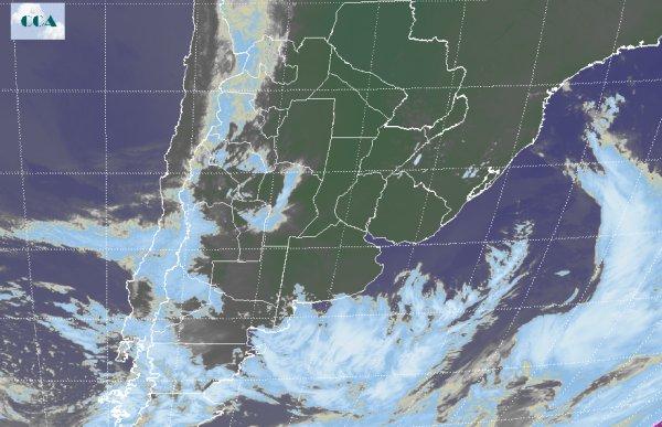 Viento predominante del sector norte, intensas nieblas, temperaturas superiores a los 14 ºC 15 ºC en la franja central y humedad prácticamente en el punto de saturación, son las características principales en el comienzo de jornada. La masa de aire muy húmeda e inestable permanece con posición invariante en el centro y norte del país extendiendo el período muy poco confortable y promoviendo un contexto de finales de verano o una avanzada primavera. El recorte de la Imagen Satelital indica la nubosidad que acompaña el sistema frontal situado sobre la costa sur bonaerense el cual lentamente avanza en dirección este noreste. Por otro lado, toda la región del NOA y Cuyo presenta condiciones muy inestables e intensos vientos debido a una importante perturbación que llega desde el Pacífico en dirección este. Las condiciones de tiempo permanecen muy inestables con altas temperaturas en los que resta de hoy sábado en la franja central y norte noreste del país. Las lluvias se presentan con preferencia en la franja centro y este de Buenos Aires para luego, en el día de mañana domingo, ubicarse en el noreste de esta provincia y centro sur del Litoral. Lentamente ingresa una masa de aire poco más fría y seca que se instala desde el sur pampeano sin que produzca condiciones de rigor en los primeros días de la semana laboral.