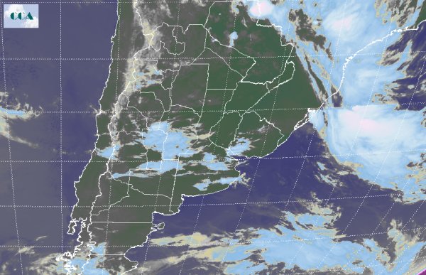 La jornada comienza con muy poca variación en cuanto a la distribución térmica respecto a los últimos días, ligeramente por encima de los 15 ºC en el sur pampeano, en torno a los 18 ºC 20 ºC en la franja central, y en la región del NEA y Cuyo superan los 22 ºC. Se reportan algunas neblinas en el centro y sur del Litoral que se trasladan también al centro y sur de SF y norte de BA, producto del descenso térmico nocturno y disponibilidad de aire muy húmedo en la región. En el recorte de la Imagen satelital se destaca una zona muy activa en cuanto al desarrollo de tormentas en el oeste de la franja central incluyendo la zona serrana de Córdoba, San Luis, centro este de Mendoza, norte de La Pampa y centro noroeste de Buenos Aires. Durante la madrugada se concretaron importantes y necesarios acumulados en la región contrarrestando, en parte, las altas temperaturas a las cuales estuvo sometida la región en las últimas jornadas. Recordemos que esta perturbación permanece prácticamente estacionaria con diferente grado de desarrollo y actividad desde la jornada del jueves. Las condiciones de inestabilidad en la franja central permanecen durante lo que resta del sábado sin que se produzcan eventos significativos. En este contexto, los valores de temperatura se atenúan consecuencia de la rotación temporal con componente del sector sur de los vientos imponiendo principalmente máximas que promueven ambiente confortable. En el norte del territorio nacional, la masa de aire cálido y húmedo continúa instalada con alta inestabilidad principalmente sobre la región del NOA donde las chances de lluvias crecen sobre la última parte del fin de semana.