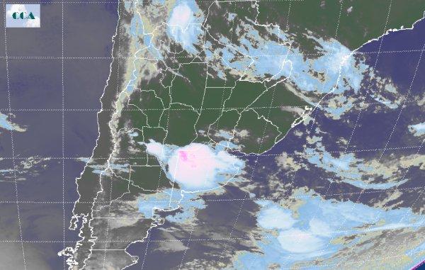 Durante el fin de semana las condiciones de inestabilidad predominaron prácticamente en todo el centro y norte del país respondiendo a la persistencia de la masa de aire muy húmedo y cálida presente en la región. Los principales registros se sucedieron en la región del NOA, provincias de Cuyo y alcanzando la provincia de Córdoba y centro norte de La Pampa decreciendo hacia la franja este. Sobre la jornada del domingo, comenzó a transitar sobre el suroeste pampeano un sistema frontal el cual es el protagonista excluyente durante el comienzo de semana. En el recorte de la Imagen Satelital se puede observar la abundante nubosidad que acompaña el sistema frontal sobre la provincia de Buenos Aires, sur de Córdoba, centro de San Luis y noreste de La Pampa. La mayor actividad vinculada al desarrollo de tormentas por estas horas se ubica en el centro y noroeste de BA con lluvias que alcanzan la zona este y noreste de la misma provincia. Otra región donde se concretan lluvias en el comienzo de jornada es el NOA extendiéndose marginalmente hacia la zona del NEA incluyendo la provincia del Chaco y zonas del norte de Misiones. Se espera que la rotación al sector sur de los vientos en la franja central durante el día de hoy, comience a generar un esperado cambio en las condiciones ambientales estableciendo un escenario con menor contenido de humedad en la atmosfera, aunque de modo temporal. Los valores de temperatura se ajustan a este contexto con un moderado comportamiento, principalmente en los registros máximos.
