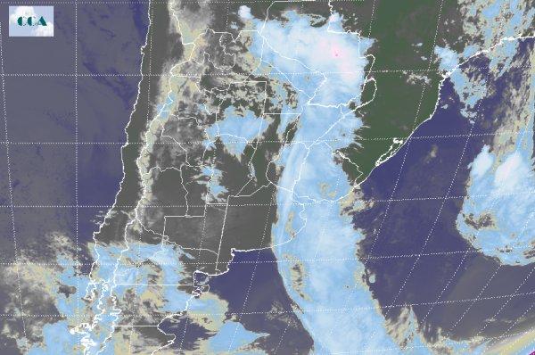 En el comienzo de jornada los valores de temperatura responden al ingreso de una masa de aire con característica fría y menor contenido de humedad. En este contexto, los registros caen a poco más de 9 ºC 10 ºC en el extremo sur pampeano y que luego lentamente ascienden en dirección norte. La imagen satelital muestra los sistemas nubosos ya desplazados hacia el noreste del país. Durante el día y por efecto de la entrada desde el sur de la masa de aire frío y seco continuaremos observando un importante descenso de temperatura. La zona más activa se desplaza hacia el norte y no se darán eventos de lluvias en la zona central de la región pampeana. El NOA es la región que mayor probabilidad de tormentas presenta; en el NEA, se producirán algunas manifestaciones con lluvias de moderada intensidad y fuertes vientos. La humedad en niveles altos de la atmósfera será baja por el ingreso de aire seco desde el sur.
