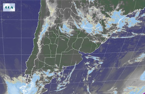 En el amanecer de hoy sábado los valores de temperatura mínima repiten el comportamiento de las últimas dos jornadas principalmente en el centro y sur de Buenos Aires, con registros que caen cercanos a los 4 ºC 5 ºC. En la franja central, alcanzan tenuemente los dos dígitos oscilan los 14 ºC - 16 ºC en el extremo norte del territorio nacional. Algunas neblinas menores se reportan en la zona núcleo mediterránea, centro y sur de Córdoba, y centro del Litoral, sin presentar mayores problemas de visibilidad. En el recorte de la Imagen Satelital puede observarse el predominio de cielos mayormente despejados en todo el centro del país, situación en parte responsable de los bajos valores mínimos. En el NEA, el tránsito lento de una perturbación desde comienzo de semana aún permanece sobre la región con algunas lloviznas menores que se reportan por estas horas, p.e. en Pcia. Roque Sáenz Peña Chaco. Para lo que resta del fin de semana no se esperan cambios significativos en las condiciones de tiempo. La principal región agrícola permanece sin recibir lluvias, en principio, hasta el final del mes; en este contexto, las reservas hídricas continúan en franco retroceso con un muy deficitario escenario al sur del salado bonaerense. Los valores máximos crecen en la jornada de mañana domingo acrecentando la amplitud térmica.