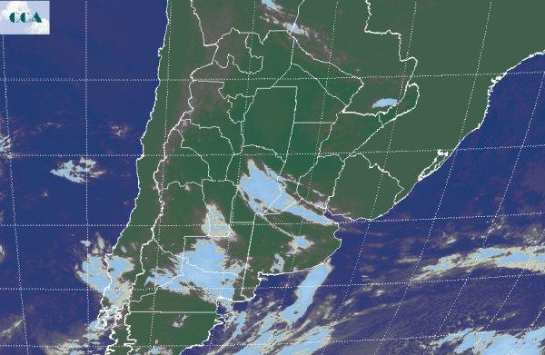 Lluvias débiles o lloviznas se están observando en gran parte del Chaco, Formosa Corrientes y el norte de SF. Las nubes que provocan estas precipitaciones se asocian a una fuerte condensación de humedad en capas bajas más que a una perturbación atmosférica de gran escala. El enfriamiento nocturno ha favorecido que este fenómeno se afiance en este vasto sector. La misma mecánica provoca algunas neblinas dispersas en la franja central, donde la humedad aun no es tan elevada. Las temperaturas mínimas siguen mostrando un camino ascendente. Las mismas ya superan los 5ºC en todo el sur de la región pampeana, más templadas en la franja central. Este comportamiento térmico se sostendrá en las próximas jornadas. La foto satelital no hace evidente las nubes bajas que generan las lloviznas en el noreste del país dado que en el procesamiento sólo se destacan nubes con algo de desarrollo vertical o en niveles más elevados. En este sentido, se puede apreciar el tránsito de nubes de escaso desarrollo que desde el centro de CB se extienden en una franja hacia el noreste de BA. Desde el norte de la Patagonia también se aprecia el avance de algunas nubes vinculadas a un débil sistema frontal con nulas chances de provocar precipitaciones. Si bien se viene observando el tránsito de nubosidad, las perspectivas para los próximos días se mantienen libres de precipitaciones. Eventualmente podrían aparecer algunas lloviznas dispersas, pero la situación dinámica dominante no anticipa ningún evento importante de gran escala. El mismo recién se concretaría en la transición entre quincenas.