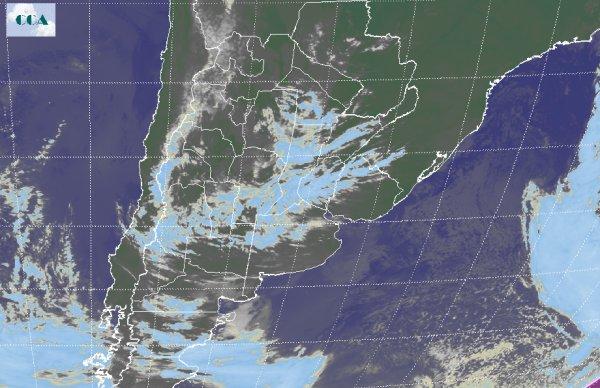 La jornada se presenta con temperaturas mínimas a nivel de helada del centro en dirección sur pampeana con el núcleo más frío en el corredor Azul Tres Arroyos Tandil. Este contexto se sostuvo gracias a la permanencia de la masa de aire frio y cielos mayormente despejados que predominan en la región. En dirección norte, los valores ascienden ubicándose por encima de los 5 ºC, inclusive si nos desplazamos en dirección oeste donde el enfriamiento no ha sido tan efectivo ayudado por el tránsito de nubosidad. Algunas neblinas sin presentar mayores problemas de visibilidad se reportan de localidades del NEA, suroeste de BA y norte de CB. En el recorte de la imagen Satelital se distingue el sistema anticlónico o de alta presión sobre la costa bonaerense promoviendo la continuidad de las condiciones estables sobre gran parte del territorio nacional. Sin embargo, el tránsito de una perturbación de dirección oeste-este sobre la franja central establece el aumento de nubosidad aunque con mínimas chances de generar precipitaciones en la región. Se espera que a medida que el sistema de alta presión comience a desplazarse en dirección este, la circulación del sector norte de los vientos comience a ganar protagonismo con el paulatino aumento de temperaturas, tanto mínimas como máximas acentuándose sobre la jornada de mañana viernes. La llegada de un sistema frontal frío a la región sur pampeana sobre el comienzo de fin de semana proyecta el desarrollo de lluvias y tormentas que en principio se restringen solamente hasta el sur de la franja central. Luego, se instala una masa de aire que proyecta un nuevo y marcado descenso de las temperaturas.