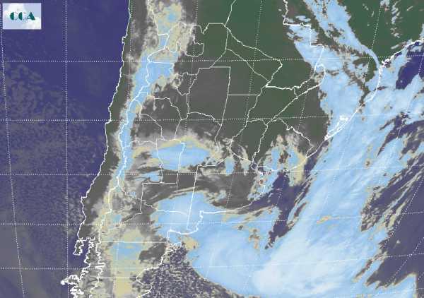 A pesar de que la actividad más importante se ha reducido, se mantiene el tiempo muy inestable con vastas coberturas de nubes bajas en gran parte de la región pampeana. El aire frío ha comenzado a ingresar y esta situación se fortalecerá a lo largo de todo el día con vientos intensos del sector sur, incrementando su velocidad sobre el este de BA durante el transcurso del día. La imagen satelital nos permite distinguir con claridad el sistema de baja presión que ayer afectó el centro este de la región pampeana y que se ha ido desplazando hacia el sur sudeste. Justamente frente a la costa sudeste de BA, la curvatura de la nubosidad facilita la ubicación del mínimo de presión que impulsa el sistema frontal. La banda nubosa asociada al frente se extiende sobre el océano y reingresa al continente por el sur de Brasil alcanzando el norte de la provincia de Misiones. Sobre BA, LP, SL, sur de CB, sur de SF y sur de ER, pueden continuar las lloviznas o lluvias ligeras. No se descartan nevadas en las próximas horas sobre SL, el sudoeste de CB o el sur de BA. La baja presión sobre el Atlántico más la alta presión que ingresa desde el Pacífico por el sudoeste configuran un canal muy eficiente para que el aire de origen polar alcance con mucha facilidad toda la región pampeana. La circulación del sur será intensa en las próximas horas. Las nubes punteadas que se observan frente a las costas Patagónicas y sobre el Pacífico, indican la presencia de aire muy frío. Esta masa de aire es la que estará afectando la región pampeana en las próximas jornadas. La zona que se despeje más rápido recibirá la helada más intensa durante el jueves, aunque el fenómeno será más generalizado el viernes.