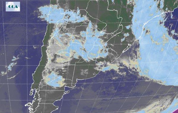 La circulación con componente del sector sur de los vientos impone un amanecer con bajas temperaturas que afectan principalmente el extremo sur pampeano y atenúa el crecimiento en la franja central del territorio nacional. Al norte de esta última región la presencia de nubosidad, si bien no permite el franco descenso de los registros, los mismos se encuentran fuertemente atenuados con baja sensación térmica. En el recorte de la Imagen Satelital puede observarse la extensa nubosidad que se ubica en el centro oeste y norte de la franja central la cual promueve áreas de lluvias en toda la región. El desarrollo más destacado en altura donde las tormentas adquieren mayor protagonismo se sitúa, al igual que en las últimas jornadas, en la provincia de Santa Fe, región del Litoral y marginalmente en el este de Córdoba. Las provincias incluidas en el NOA también están recibiendo el aporte de lluvias gracias a una perturbación cuasi estacionaria instalada en la región. Se espera que durante el fin de semana el centro y sur de la región pampeana continúe influenciada por un sistema de alta presión que mantiene las buenas condiciones del tiempo. Sin embargo, en el noreste de Buenos Aires, Santa Fe, este de Córdoba y principalmente la zona del Litoral, las condiciones se mantienen con alto grado de inestabilidad con los principales acumulados concentrados en esta última región. Las temperaturas no presentan importantes cambios continuando con registros que no logran ajustarse a lo esperado para el comienzo de la primavera.