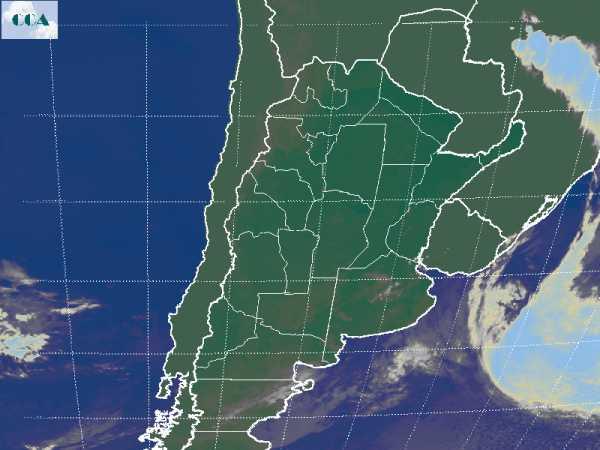 La imagen satelital presenta corrida hacia el este la nubosidad que dejara las importantes lluvias del fin de semana sobre la provincia de ER. El sudeste de esta provincia recibió aproximadamente 150 mm, mientras que el resto de este territorio acumulo registros de entre 50 y 80 mm. Las precipitaciones se extendieron a gran parte del este de BA y el este de SF, con registros que mucho menos destacados dado que fueron afectados marginalmente por el centro de baja presión. Hacia el oeste y dentro de lo previsto las precipitaciones fueron prácticamente nulas. En el comienzo de la jornada de hoy se presentan coberturas bajas sobre gran parte de BA, ER y SF, las cuales tienen un desarrollo muy modesto como para que aparezcan resaltadas en la foto. El remanente del sistema de tiempo que definió las condiciones meteorológicas del fin de semana, es el inicio de una marcada circulación del sur (sudeste/sudoeste), que se irá fortaleciendo con el correr del día y facilitará una fuerte irrupción de aire frío. Se espera que un sistema de alta presión ingrese desde la Patagonia, favoreciendo el avance de aire de origen polar, promoviendo un marcado descenso de la temperatura. El mismo se irá haciendo evidente en el transcurso de la jornada de hoy, reflejándose con intensidad en las mínimas de las jornadas del martes y miércoles, para cuando se esperan heladas en gran parte de la región pampeana, principalmente en el centro sur.
