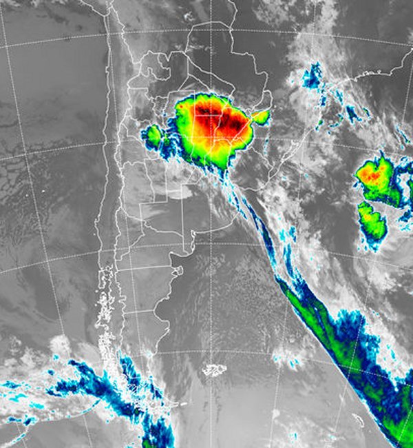 Durante las últimas horas de la tarde de ayer, el sistema frontal alcanzó el norte de BA y el contraste de masas de aire disparó con una dinámica muy eficiente, el desarrollo de importantes tormentas. Para la noche gran parte del centro sur de SF, ER y este de CB, mostraban un vasto despliegue de tormentas, las cuales por sectores dejaron abundantes precipitaciones. Los primeros datos muestran a zonas de la provincia de ER con promedios que superan los cincuenta milímetros, algo que puede haberse reproducido en sectores de la provincia de SF. Durante la madrugada las tormentas se movieron al norte de CB y desde allí se fueron proyectando a su posición actual, con epicentro sobre el NEA y el centro de la Mesopotamia. En el recorte de imagen satelital se aprecian los importantes desarrollos de nubosidad que genera la llegada de la perturbación frontal al norte del país. Una situación similar se observó en la tarde noche de ayer sobre las provincias centrales de la región pampeana. Este sistema de mal tiempo paso por las provincias de BA y LP, con muy escasa actividad, con excepción de los partidos del norte central, donde las tormentas si fueron más importantes. Con el transcurso del día, la mejora en las condiciones y el cambio de masa de aire será progresiva sobre la franja central. Esto ya se ha observado sobre el sur de la región pampeana donde la temperatura está en franco retroceso. Las lluvias ahora se concentran en el noreste del país, donde ya hay reportes de precipitaciones abundantes sobre gran parte de Corrientes y Chaco, con piso en los cincuenta milímetros, algo que tranquilamente pudo haberse concretado también en el norte de CB, sudeste de Santiago del Estero y el norte de SF. Se espera que durante el sábado el ambiente se mantenga estable y fresco en la región pampeana, con mínimas bajas en el sur de BA y LP, pero en principio sin heladas.