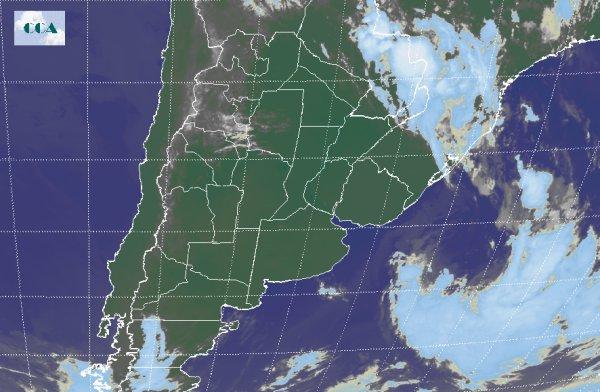 Después de los dos días anteriores, donde los sistemas de nubes mostraban una importante actividad sobre Argentina, nos encontramos ya con muy poca actividad debido al desplazamiento de los sistemas de lluvias hacia el noreste de Argentina, y la poca actividad se encuentra en algunas regiones del sur de Brasil, aunque durante el día de hoy el aire cálido a caluroso y húmedo (asociado a bajas presiones) continuaría en el centro y norte del país hasta el fin de semana. Durante el día de hoy tendremos cielo despejado o con alguna nubosidad sin actividad sobre el país.