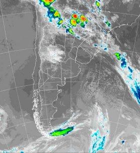 En la foto de satélite podemos observar un vasto despliegue de nubes bajas sobre la región cuyana y la mayor parte de CB. Dentro de esta zona, aún se están concretando precipitaciones menores o lloviznas. Esta nubosidad se proyecta hacia el NOA, con el este de Jujuy y el norte de Salta más activos en cuanto al desarrollo de tormentas. Este mayor nivel de actividad se proyecta a los países vecinos del norte y avanza hacia el este sobre Formosa. Los cielos se mantienen despejados o con coberturas parciales en el este y sur de la región pampeana, condición que también prevalece en gran parte de la Patagonia.